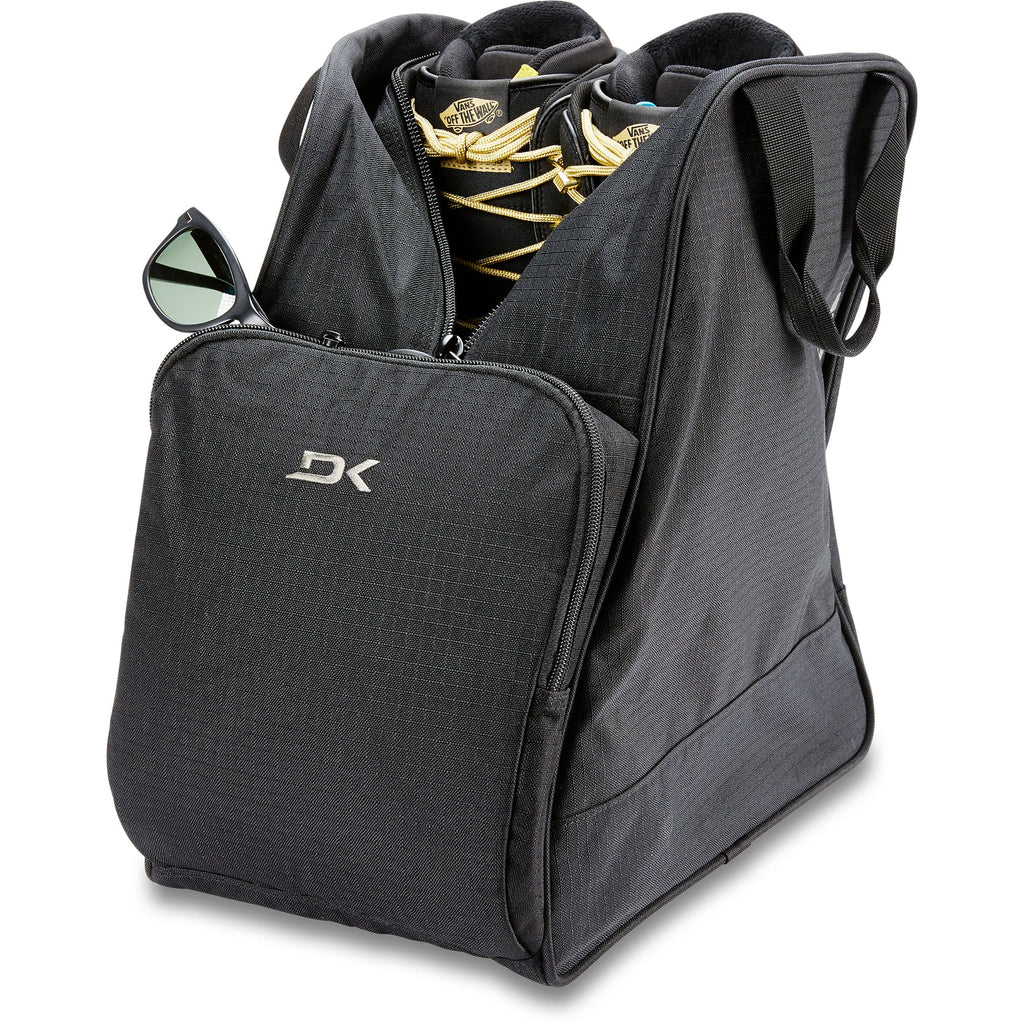 A simple way to keep your boots clean and dry on the way to the mountain and your car clean on the way home. Nice zippered pocket up front for spare lenses, snacks or some boot warmers.