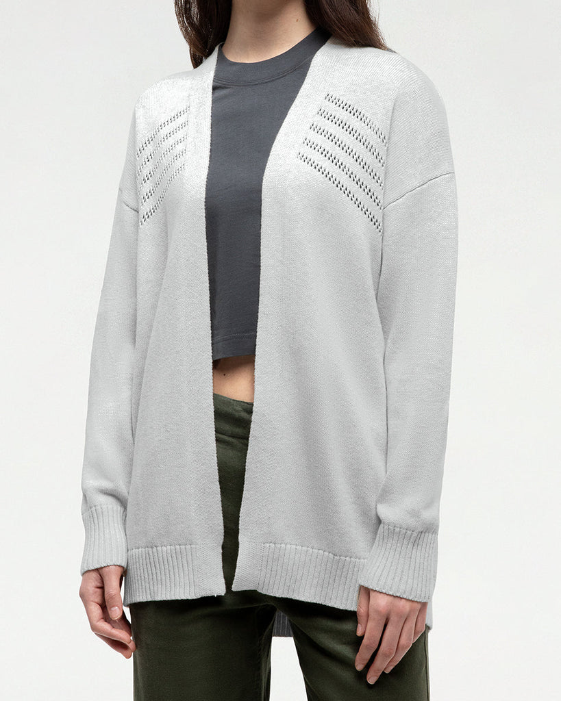Meet your new favorite Cardigan. Made from sustainably sourced organic cotton, this open-front style has a unique stitch pattern and a sleek straight hem.