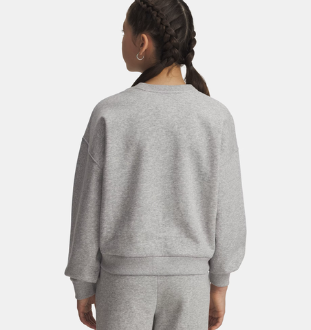 Under Armour Girls' UA Rival Fleece Oversized Crew - Mod Gray Light Heather / White - 011