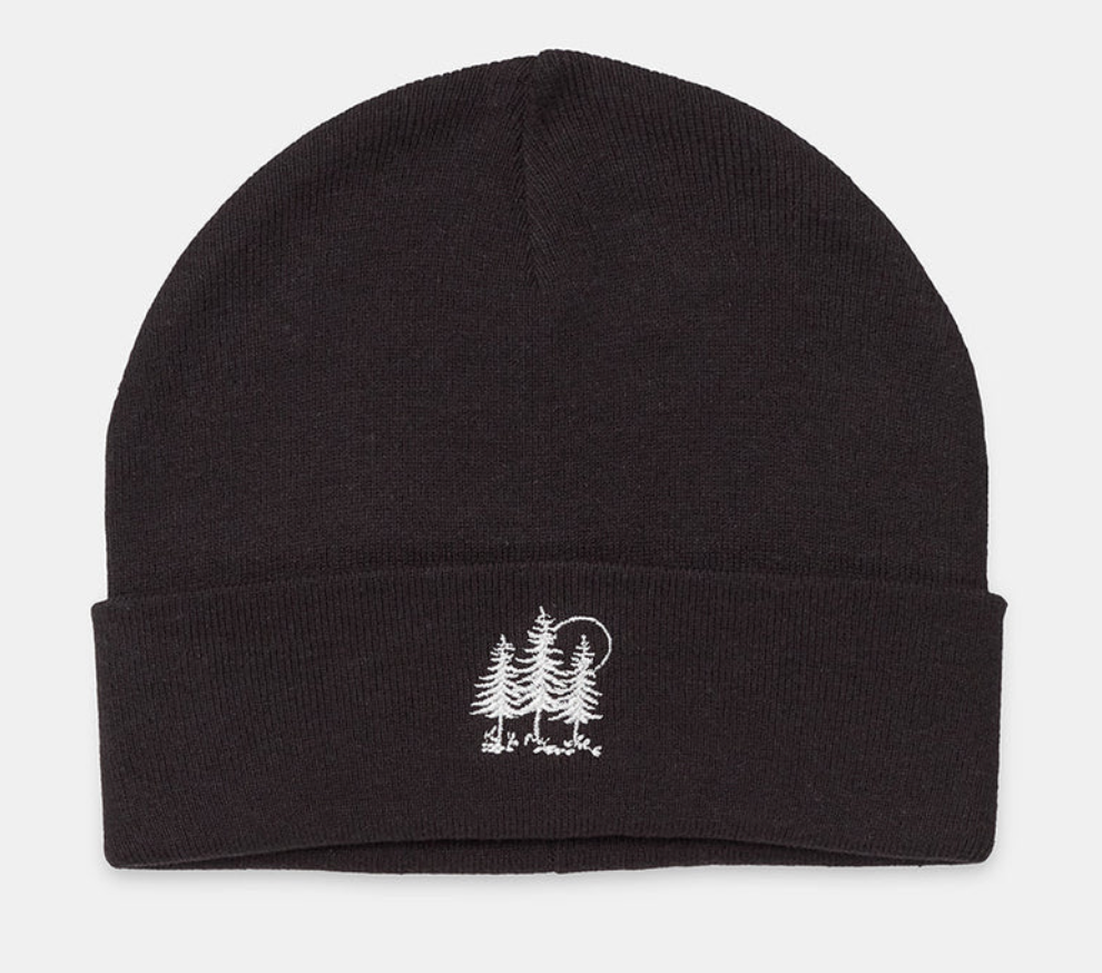 This beanie's subtle embroidery features a Sitka Spruce, native to the temperate dry forests that you help us plant in.
