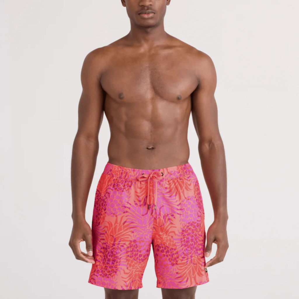 Saxx Mens Oh Buoy 2N1 Volley 7" Swim Short - Pineapple Patch-Coral