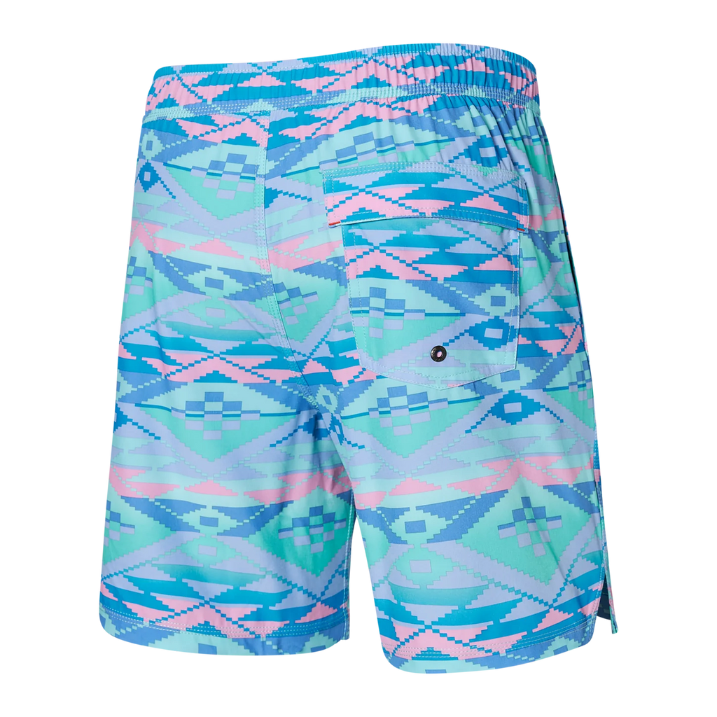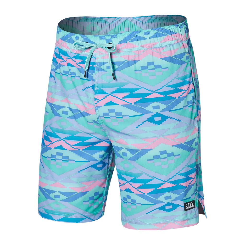 Saxx Mens Oh Buoy Stretch Volley 7" Swim Short - Geo Gradiant- Multi