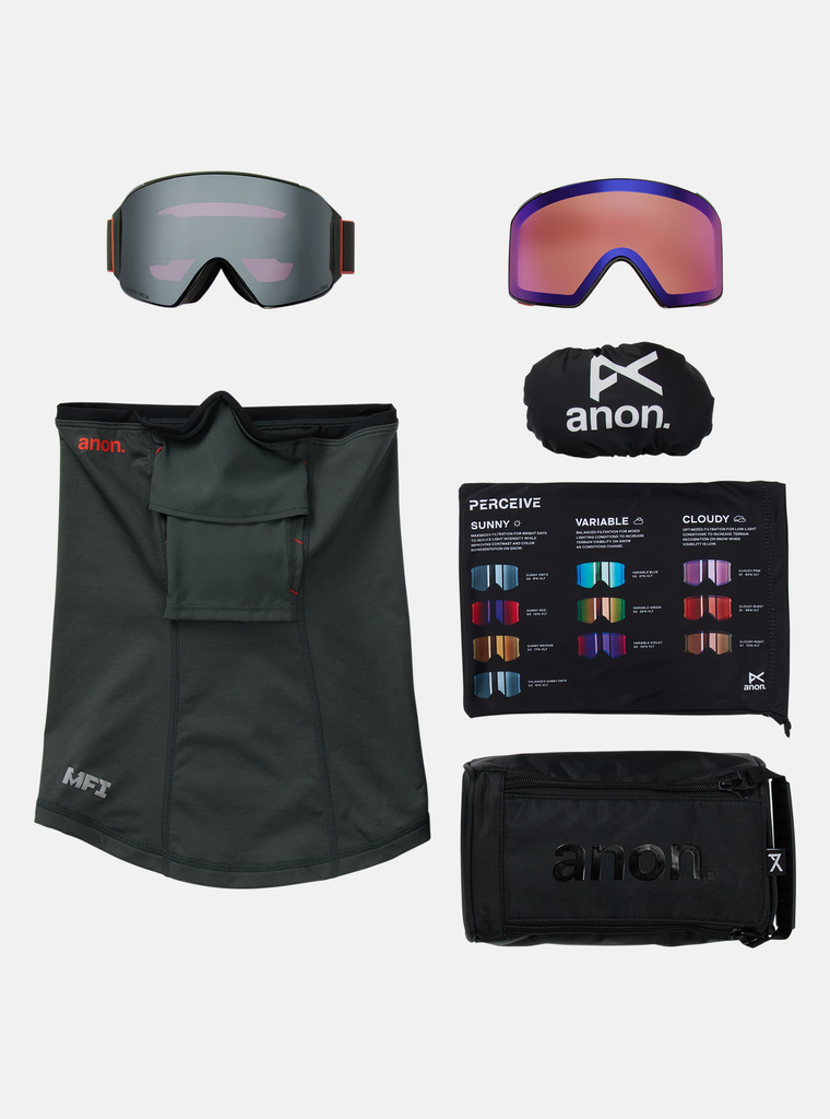 The Anon M4 Toric Goggles offer a precise helmet-to-goggle fit with the wide field of view and enhanced peripheral vision of a toric lens. Our innovative Magna-Tech® quick lens-change technology uses powerful rare earth N52 magnets to make lens changes easier than ever. The M4 offers the unprecedented versatility to switch between toric and cylindrical style lenses. This edition of the M4 includes two toric lenses featuring Perceive optics for high-contrast, terrain-defining clarity and our best anti-fog treatment for crystal clear vision through a wide range of conditions. Magnetic Face Mask Integration (MFI®) provides seamless face mask attachment, and full-perimeter vents maintain consistent airflow for fog-free clarity. Includes an MFI face mask, a Magna-Tech goggles storage case, and a goggles sock protector.