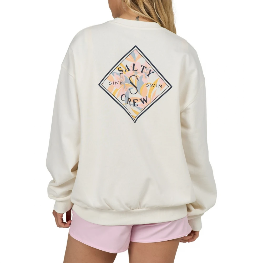 - Salty Crew Tippet women crewneck sweatshirt in off white color with oversized fit for modern street style.