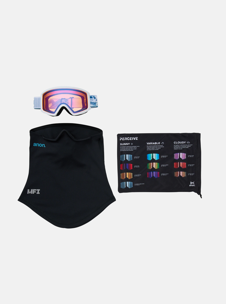 The Anon Tracker 2.0 Goggles are sized for kids to create a comfortable fit that's helmet and eyeglasses compatible. They work with our MFI® hoods, face masks, and neck warmers for seamless coverage from snow, wind, or sun. The cylindrical lens and flexible frame follow the natural curve of the face. Full-perimeter vents and our anti-fog treatment help maintain a clear, fog-free view come storm or sun. Includes MFI face mask and microfiber goggle bag.