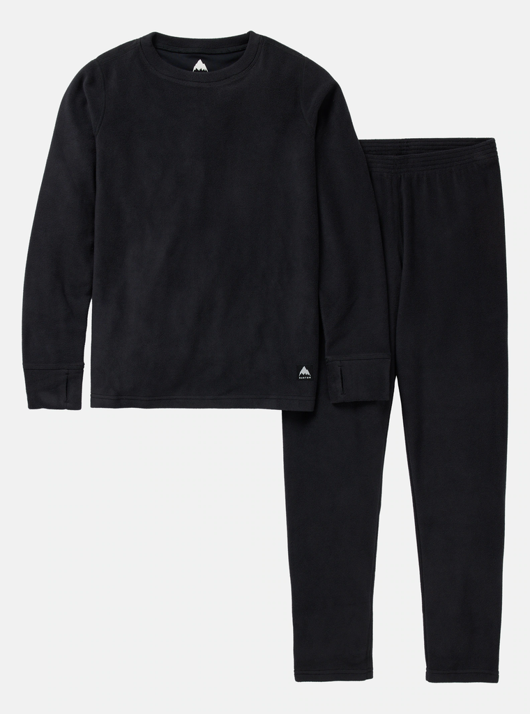 Make the outdoors their playground with the top-to-bottom warmth of the kids' Burton Fleece Base Layer Set. It's the layering lesson that rolls from PJs to the mountain to keep kids toasty, dry, and ripping all day long. Thumbhole cuffs keep snow out.