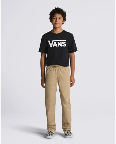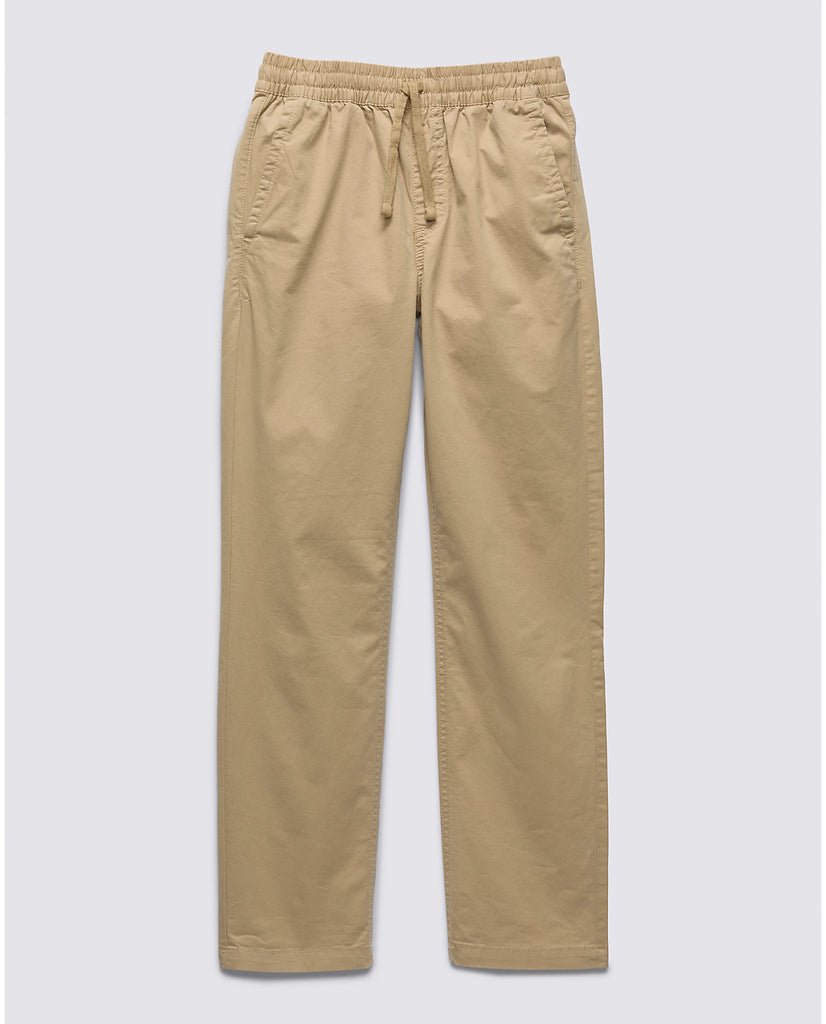 The Kids Range Elastic Waist Pant is a comfortable, lightweight twill chino pant with an elastic waist. Embroidered Drop V bartacks adorn front and back pockets, and a drawcord offers an even more customizable fit. Model wearing size 26 or Medium