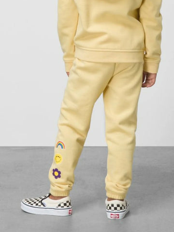 The Radically Happy is a 60% cotton, 40% polyester sweatpant with no side seams and a smiling rainbow screen print at the leg. Along with a comfortable elastic waist, this sweatpant has an easy fit.