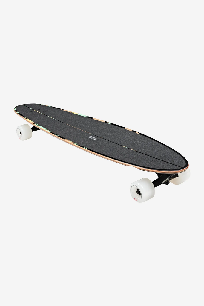 40.5" x 9.875" x 28.5" WBResin-7 hard rock mapleMedium side-to-side concave and light rocker profile150mm Slant reverse kingpin trucks70mm 78a Bender wheelsABEC 7 bearingsSplit griptape with top art