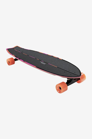 The Chromantic - Sea Devil is a mid-length swallow-tail cruiser, 33" x 9.5" x 22.25" wb constructed from Resin-7 hard rock maple with mellow concave and kicktail, rolling on 78a conical cruiser wheels and Tensor trucks.