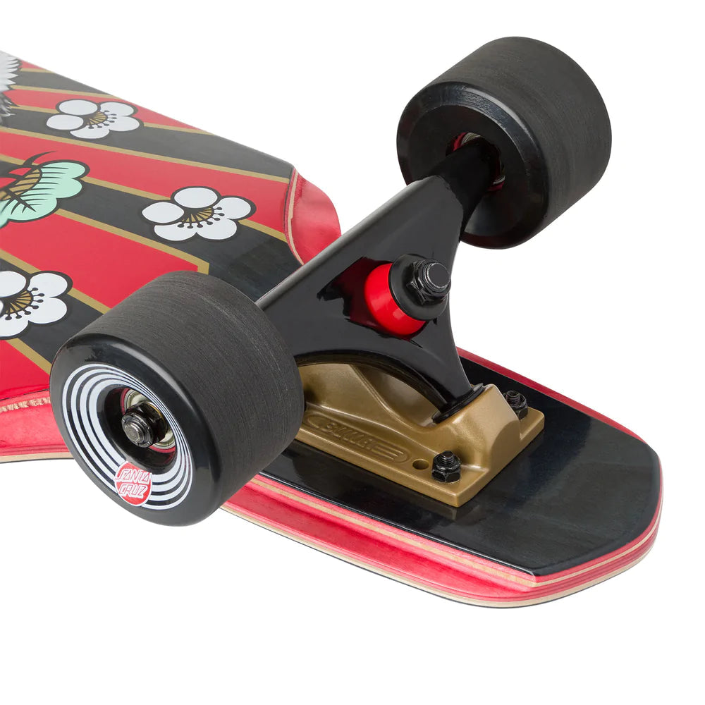 Santa Cruz Skateboards Crane Dot Dropdown Longboard Cruzer with art by Mako @makoyamaki, based on the original artwork by Jim Phillips, on modern medium sized drop down shape featuring routed wheel wells, 160mm Bullet reverse kingpin downhill trucks and 66mm Santa Cruz branded Slime Balls wheels.